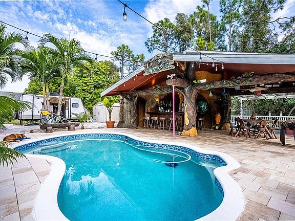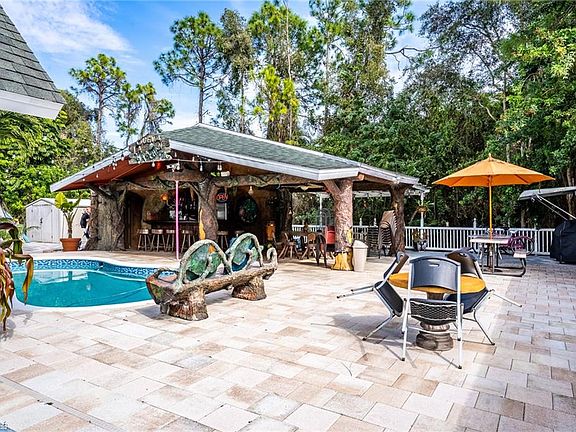 Come to see this amazing 2 stories home, very well located in San Carlos area. Very close to I-75. City water with all assessments PAID! 3 bedrooms 3 baths over 1700 sqft. Garage was converted into a studio, so includes another full bathroom, kitchen and small living room. Fully remodeled kitchen with counter top stove, wall oven and microwave with beautiful cabinets. Upstairs you find the master with a double windows with view to the amazing patio and pool. Master bath has 3 showers, double sink, and again everything just remodeled. NOW! The BIG SHOW of the house is the outstanding patio, built in detail by the current owners. Cave style as the photos show. Concrete pool and outside half bath very convenient for parties or any activities with family and friend. Definitely worth coming and seeing in person. Don't take too long!! this incredible property will sell itself.
