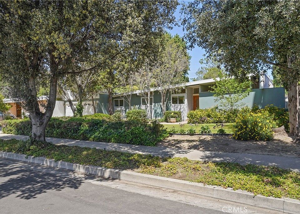 Run, don't walk to this modern sun-filled mid-century single-family residence on a 11,055 sqft lot. Architecturally designed by Dan Palmer & William Krisel architects and constructed by renowned contractor Julian Weinstock. Take a journey into the past as you reminisce the 1950's. Emphasizing indoor & outdoor living, these homes were referred to Living-Conditioned Homes offering sloping rooflines and walls of glass on the interior. Beautiful landscaping surrounded by towering trees will lead you to the front door entry of this residence. The minute you enter you will experience a BLAST from the PAST. The interior incapsulates many original mid-century characteristics such as ceiling to floor windows spanning the entire back of the living room and formal dining area with picturesque views of the rear yard. Enjoy your meals in the true formal dining room or just step outside for your "Alfresco" meal in the enchanting yard featuring a stone open-air patio overlooking blooming flowers & plants. The functional compact kitchen offers tile counter tops, wood cabinetry and breakfast bar with overhead glass storage, the perfect place to enjoy your morning coffee rituals. Primary en-suite bedroom is separated from the other bedrooms and offers a walk-in closet and private 3/4 bathroom with exterior access door to the side yard. The secondary bedrooms are located at the west wing of the residence, all are spacious and feature wall to wall closet storage with access to the vintage hall bathroom. The adjacent laundry room is a plus with access to the linen storage cabinets, ideal for all your extra household items. Good sized 2-car garage is ready for your off-street parking and offers glass windows for natural lighting. Residence is centrally located to nearby shopping & local restaurants. Also near Andasol Elementary and within the sought-after Granada Hills Charter High School area. You will not be disappointed with this Masterpiece if you are in search of a Modernist residence. NOTE: Some of the photos have been virtually staged to give you a sense of what you can create with the interior of this residence.