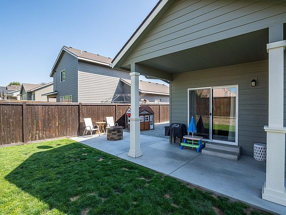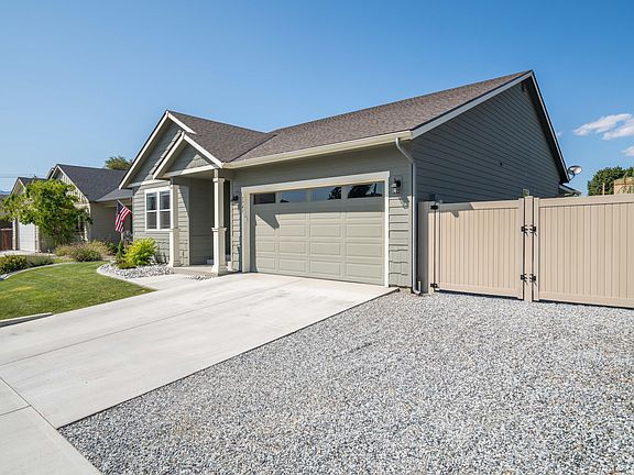 This immaculate rambler features 3 bedrooms and 2 bathrooms. The kitchen has beautiful granite, large pantry, stainless appliances including refrigerator. A large island that opens up to a spacious great room with a gas fireplace that makes gatherings comfortable. The fully fenced back yard has a covered patio with extended concrete patio plumbed for propane fire pit for entertaining. Large storage room above the garage with a pull down ladder. RV parking, irrigation water, automatic sprinkler system with curbed edging for easy maintenance.
