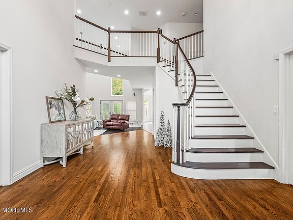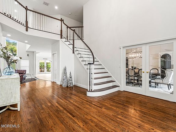 Just listed! Stunning 5BR/6.5BA Colonial on 2.5+ acres in Wall Township's premier location. Tucked away on a quiet street and backing up to green acres, this home offers approx. 6,500 sq. ft. of living space with an open floor plan, soaring ceilings, freshly painted interiors, and beautiful wood floors. Spectacular open gourmet kitchen with 2 refrigerators and center island for entertaining. Primary master suite has a new bathroom with a double steam shower, soaking tub and double sinks. Additional features also include a first-floor bedroom with full bath, heated saltwater pool with spa, multiple decks and patios for entertaining, finished lower level, whole-house generator, updated roof, 3-car garage, and a private office/ bar room. A rare private retreat blending luxury and comfort!