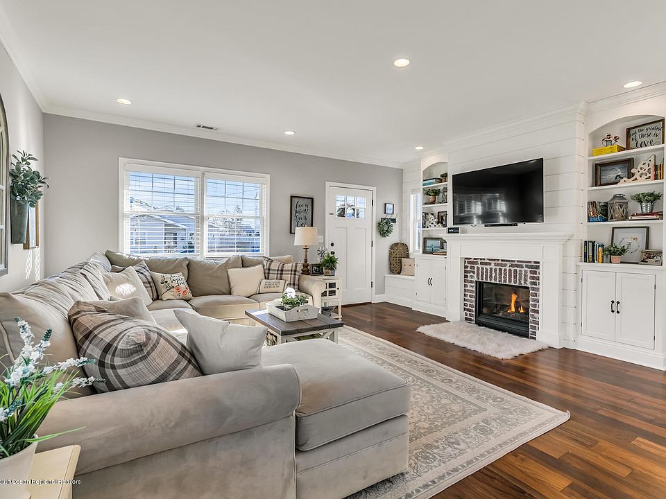 - RoomLivingRoomFeatures: Dec Molding, Floor - Wood, Fireplace - Gas, Built-Ins