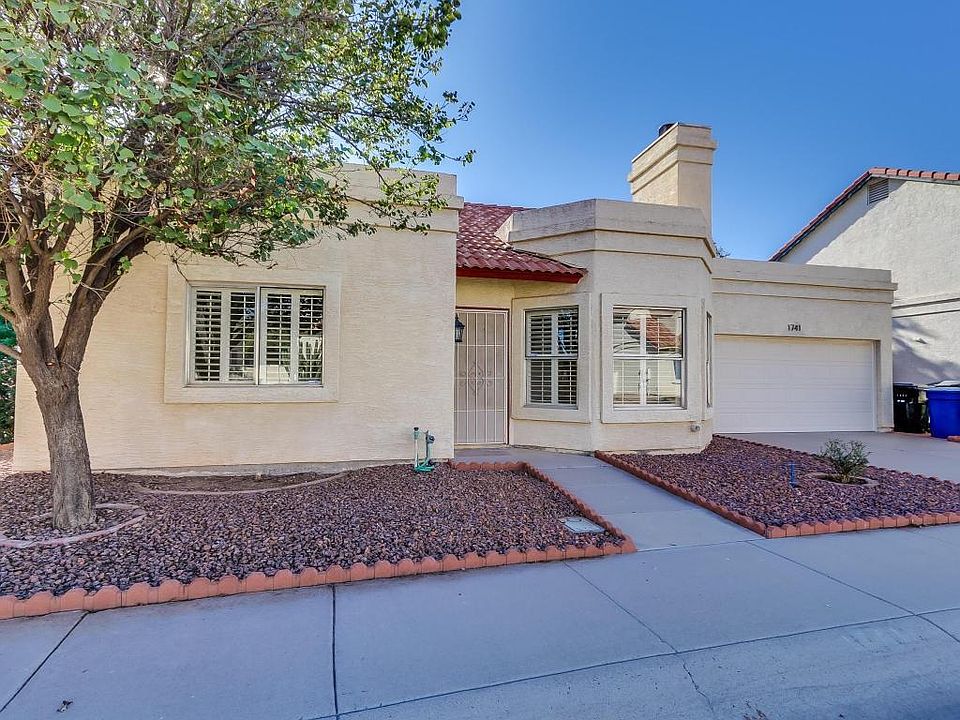 Why live in an apartment when you can live in a home and get a 2 car garage with your own driveway and a maintenance free private fenced yard! This 2-bed, 2-bath Chandler home boasts vaulted ceilings, bay windows, plantation shutters, and a covered patio with an extended uncovered section in the back! On cool evenings, you can cozy up to the fireplace in the Great room. The kitchen features stainless steel appliances, tile backsplash, and it's open to the adjacent dining area with access to the back via sliding glass doors. The Master bedroom has an ensuite bath with a tile surround tub/shower combo. Upgrades include fresh interior paint and new carpet! It's just a short walk to KK Skousen Park and the home is near the cinema/shopping/dining options at Crossroads Towne Center and AZ-202 access. $1395 per month, $1395 security deposit Credit, background check and income verification required. Tenant pays all utilities. Landlord pays HOA.