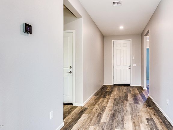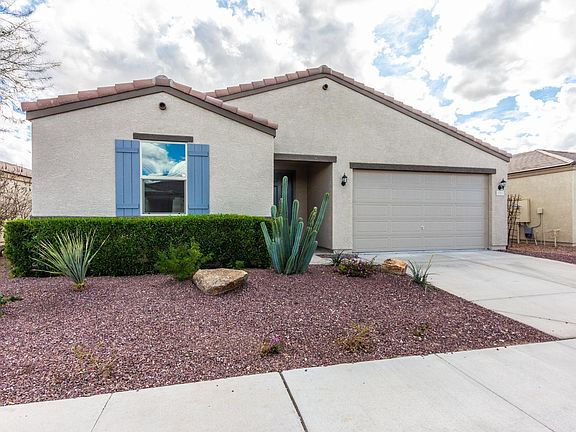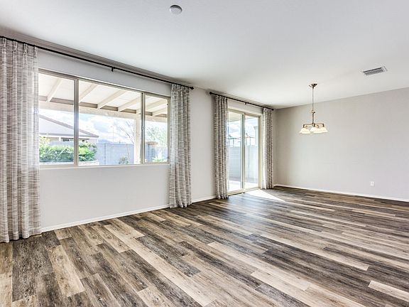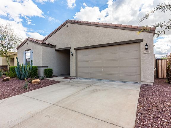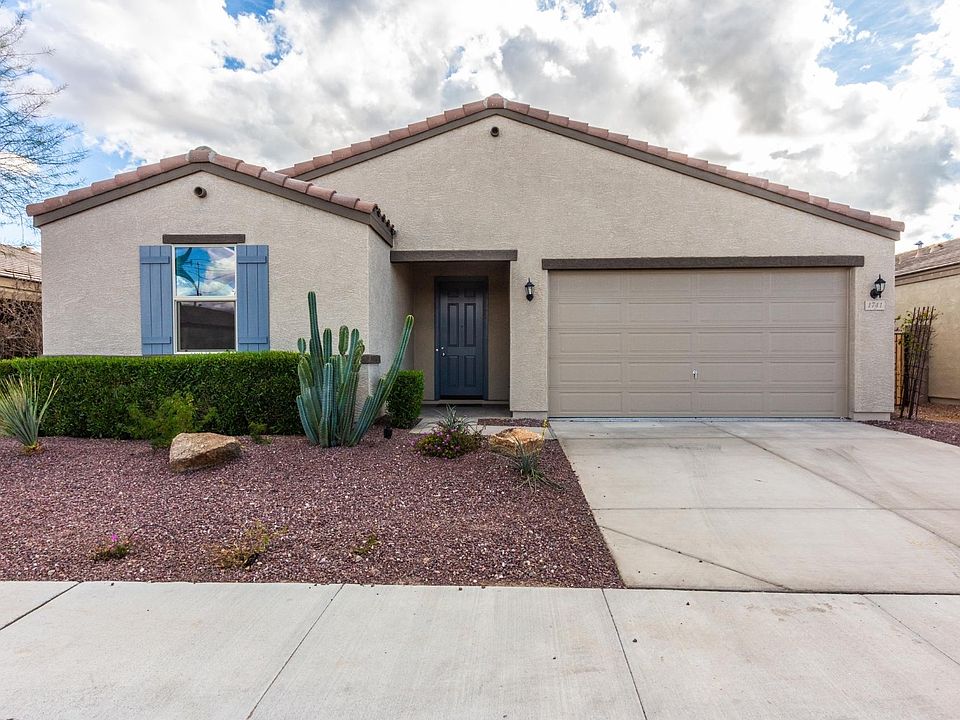 You'll love this MOVE-IN READY former model home featuring 3 bedrooms & 2 baths in 1668 SqFt. Great room floor plan open to the beautiful eat-in kitchen. The kitchen features an oversized island with breakfast bar seating, Timberlake white cabinets, stainless appliances and a spacious walk-in pantry. Sliding doors lead out to the wonderful backyard complete with cover patio, additional paver patio, refreshing pool with water feature, artificial grass for kids & pets to play on and beautiful desert landscaping. The spacious master retreat has a private bath with dual sink vanity, shower & large walk-in closet with built-ins. Upgraded vinyl plank flooring throughout living areas & Shaw carpeting in all bedrooms. Other features include recessed can lighting throughout, 2 car garage, electric* water heater, low flow fixtures, Carrier A/C, Côr Wi-Fi programmable thermostats & much more! See this ENERGY STAR certified home today!