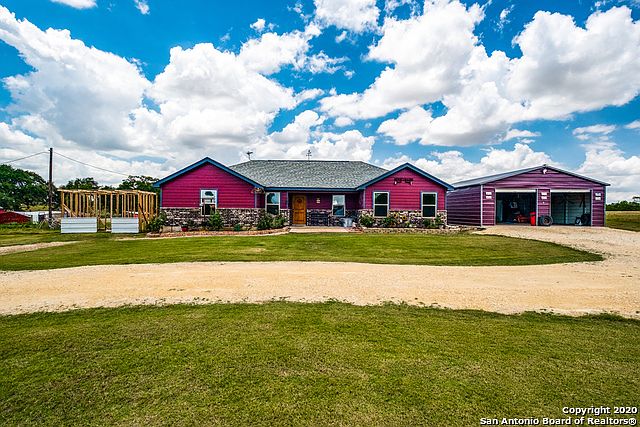 Welcome to this secluded country view home on 2.5 acres in Jourdanton I.S.D.!!! This wonderful home was built in 2016 which features 4 bedrooms, 2 full baths, open floor plan, and detached 2 car garage. This home is custom built for its new family featuring granite countertops in kitchen and bathrooms, custom cabinets, and water softener. Home is split throughout with carpet in the bedrooms, and stained concrete in bathrooms/kitchen. This home has a covered patio on the back of the home, with an amazing view of the countryside. Home is very secluded and features paved access off of Ernst road. Home has its own water well located on property.