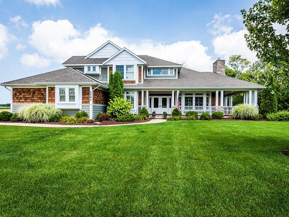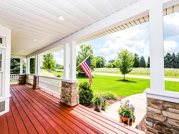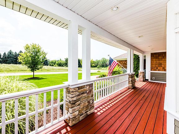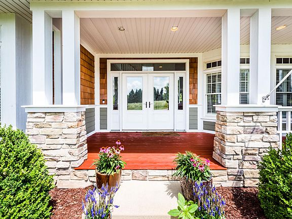 Custom Built Luxury, one of-a-kind home. The expansive covered veranda greets you as you enter the double glass doors, you will be in awe of the quality, rich cherry hardwood floors, handmade tile, custom mill work, limestone, granite, soaring ceilings, open floor plan & bounds of natural lighting. You'll appreciate the Gourmet Eat-In Kitchen and adjoining Dining Area to make a perfect gathering spot with a stone fireplace and built-in area for a flat-screen TV. A dramatic staircase leads to second floor Sitting/Office Area. The private Master Suite features a bay-windowed sitting area with a door to the upper deck, luxurious bath with garden tub, walk-in tile shower and a granite & cherry vanity. Lower level walkout features a wet bar/sports bar area, very private patio with a huge stainless gas grill, Lg. Rec room and a room used as a guest room. The extensive landscaping make for amazing curb appeal.