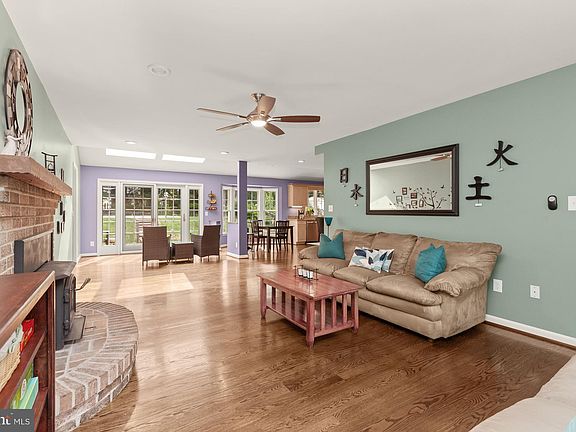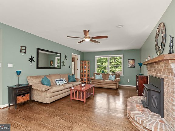 This beautiful, private, and semi-secluded colonial on pristine landscaping with space for a garden, and secure storage for lawn tools, and is settled amongst mature trees with an abundance of outdoor living possibilities. Arrive through the front porch and pass the strawberry patch or the convenient two-car garage and enter an open main level that offers gorgeous hardwood floors that continue throughout and accents the chair railing and neutral color palette. Let the eat-in kitchen inspire delectable delights boasting a sizable pantry, planning station, pull-out classic style cabinetry, a center island, stainless steel appliances, a breakfast area, and granite counters. Spend time with family and friends in the spacious family room that is adjacent to the kitchen and offers a wood-burning stove fireplace and access to the rear yard and in-ground pool for a seamless transition from indoor to outdoor entertaining. Relax and unwind through the French doors and into the sprawling primary bedroom suite adorned with plush carpet, a wood-burning fireplace for cozy evenings, two closets, one being a walk-in closet, double vanity, and a ceramic tile walk-in shower. Three additional bedrooms and a hall bath complete the upper-level sleeping quarters. The lower level awaits and provides many opportunities as a game, recreation, media, or office space with a pellet stove, brick accents, and paneled wainscoting that brings warmth and sophistication. More to come in this spectacular home with an attached carriage house offering a plethora of options as a fitness area, a workshop for your motor vehicles, weekend projects, or convert into a guest house. Enjoy morning coffee, tea, or evening cocktails, and be inspired by the tranquil atmosphere with stunning views of butterflies and the soothing sounds of nature on the rear deck. Major commuter routes include MD-32, I-695, and I-70 for travel to points north and south. Updates: Heat Pump, Pool Filter