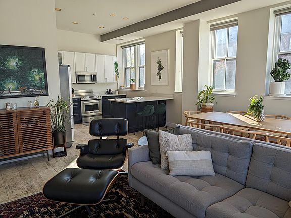 This quiet, 13 unit building with a shared roof is steps from the heart of 14th street! You'll have immediate access to the best restaurants and shops in DC without the crowds or noise of living on 14th street. 2bd / 2bth, 1100sqft with 11ft vaulted ceiling. - NW facing unit with large windows and amazing light - Secure and private underground parking with storage space - Travertine marble and wood flooring throughout Large primary bedroom with top down/bottom up blackout shades, with a walk-in closet. Ensuite has a travertine shower, double vanity, and top down/bottom up shades to let in plenty of light while maintaining privacy. Primary bedroom pictured with a king size bed and standard dresser. Second bedroom has a double door closet with built in shelving, and is perfect for dual use guest bedroom and WFH office. Spacious living/dining/kitchen area including an island for hosting. Windows equipped with roller shades. Large storage closet and a large entryway coat closet with additional shelving. View of 4th of July fireworks from Rooftop. Painting or Wallpaper allowed provided tenant returns walls to original state upon move out. Location: Steps from the best locations on 14th Street: Aslin 0.1 mile, 1 minute walk Blank street 0.1 mile, 2 minute walk Trader Joe's 0.4 mile, 5 min walk Amazon Fresh 0.2 mile, 3 min walk Le Diplomate, 0.2 mile, 4 min walk Vida U 0.5 mile, 11 mins Vida P 0.3 mile, 7 min walk Whole Foods 0.5 mile, 9 min walk Renter is responsible for: electric, gas Condo building covers water and trash Cats/dogs allowed