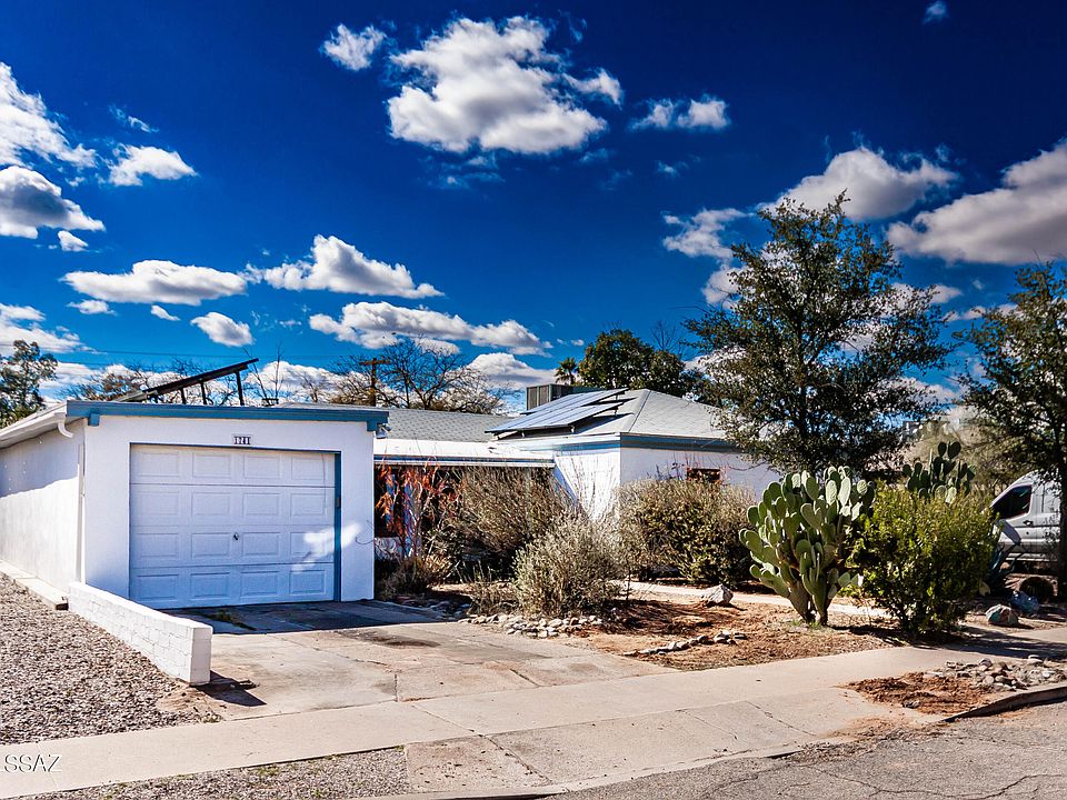 Amazing central 3br 2ba Garden District Home in Frontier Village Subdivision. This home offers a beautifully updated kitchen with island, accented granite counter tops, and back splash, gas stove, microwave, frig, and dishwasher included. Kitchen opens to roomy family room or dinning area. Additional living room with cozy fireplace and plenty of room for entertaining family and friends. The master bedroom is spacious with an inviting fireplace and plenty of room for your king size bed. Additionally there are 2 bonus rooms that can be used as an office, gym, hobby room or additional bedrooms. All windows are dual pane, but one in the front north bedroom, water main was recently replaced with auto pressure sensor, newer water and electric lines to washer and dryer. Click for additional info. New wood laminate flooring in kitchen, living room areas, and one of the bonus rooms. Ring door bell with camera at front door. Owner owned solar panels for added utility savings. The huge back yard features a few citrus trees, a pomegranate tree, and is fully enclosed with a block patio wall, which is great for pets or just a nice private yard to do as you please. Located minutes from Botanical Gardens, Tucson Medical Center, University of Arizona, restuarants and shopping.