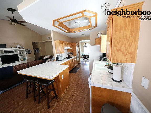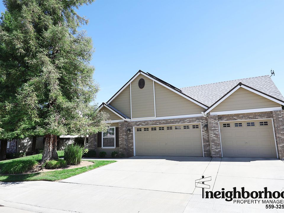 This home is loaded with extras! Featuring four bedrooms, this this home also includes a 5th room that can be used as an office, game room, home gym, etc. Enjoy vaulted ceilings, a fireplace, ceiling fans and wood flooring throughout. The master suite features a large bathroom with a separate tub and shower. Available for use inside includes a refrigerator, washer, and dryer. The back yard is an entertainers paradise with a fully loaded outdoor kitchen. Items available for use include a BBQ grill, smoker, kegerator, mounted TV, and a pizza oven! This home also offers a 3 car garage, SOLAR, swimming pool, and hot tub! POOL SERVICE AND LANDSCAPING INCLUDED. CUSD Available 6/10/10. Please make an appointment to view. Please do not disturb current occupants. CLOVIS UNIFIED SCHOOL DISTRICT Woods Alta Sierra Buchanan (renter to verify)