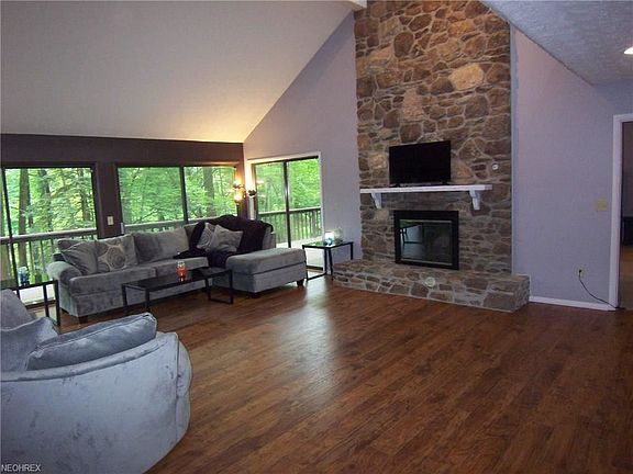 This wonderful, detached condo is loaded with updates. Starting with a large, first floor, owners suite complete with walk in closet, costume shower with glass doors, ceramic tiled floors and granite counter tops. Access to private balcony, through slider doors finish the master suit. The spacious kitchen has new maple cabinetry, granite counter tops, stylish tile backsplash and plenty of storage. All stainless steal appliances convey. The dinette is located just off the kitchen with access to private balcony. The impressive great room boasts cathedral ceilings and a massive stone fireplace. Upstairs buyers will find two bedrooms, a loft, and an updated full bath. The walk-out lower level is finished with a must have wet bar, wine fridge, rec room with a second stone fireplace and updated full bath. The sliders leading outside, allows for inside, outside entertainment. The back of the property overlooks a wooded pond. Peace and tranquility is right outside the doors. Other features include oversize two car garage, first floor laundry, neutral paint, and upgraded flooring throughout. Roof was replaced September 2017.