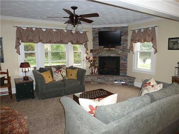 Stunning Cape Cod set on 30 acres of gorgeous farm land. The endless modern updates throughout retain the home's old world charm. Spacious bedrooms and remodeled baths. Brand New carpet showcased in living room also featuring corner gas fireplace accented by beautiful stone hearth. Opening to remodeled Kitchen, Walk-in Pantry and Formal Dining Room. Family room has dry bar, overlooks new deck, koi pond and fountain. Barn has been updated with new roof, two additions, water, heat, and electric. A vast amount of property and a truly charming home. It's everything you're looking for and more!