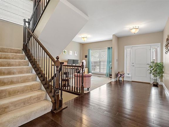 This luxury home has too any upgrades to list! Nestled on a nicely landscaped premium lot, you're welcomed with custom wood floors that flow from a front room, formal dining room, and a great room w/bump out gas fireplace and a bay wall of windows. In the heart of the home, you'll find the spacious kitchen adorned w/granite countertops, custom cabinetry, SS appliances, gas range, center island and walk-in pantry. The main floor is complete with an oversized 3 car garage, laundry room, and half bath. Retreat upstairs to the master ensuite, featuring a spacious sitting room, dual walk-in closets, coffered ceiling and luxury bath with a dual vanity, shower and soaking tub. A loft space and three additional bedrooms w/ample closet space complete the 2nd floor. The walkout basement is equipped with gym flooring, rough-in plumbing, and an egress window. Enjoy sunsets from the low maintenance deck that walks down to a patio overlooking a well manicured fenced-in yard. Open this Sat&Sun 1-3pm.