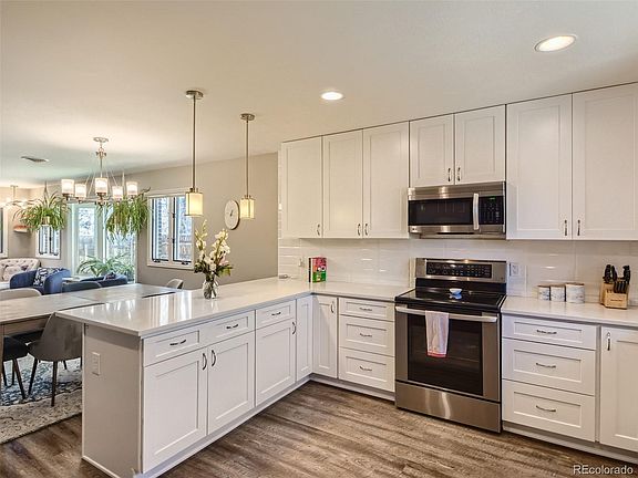 Step inside to this entertainers dream with an amazing open living room featuring a skylight that allows for a lot of natural light and a cozy fireplace to keep warm. This gorgeous kitchen is fully equipped for all your cooking needs with will beautiful quartz counters, soft closing cabinets and stainless steel appliances. What completes this beautiful home is the stunning primary suite with a huge walk in closet and en suite bathroom. This home also includes 2 spacious bedrooms and 2 other full bathrooms. The basement is finished adding additional living space with a family room, bedroom, and bathroom. The backyard has everything you need to relax on deck or patio by reading a book or hanging out with friends. Backyard also has an nice size shed and automatic sprinkler system.  Garage just got a make over with new walls with insulation and flooring. Click the Virtual  Charming single story home located just walking distance from Green Gable park, walking trails, retail, restaurants, and more! Close to all major highways to get you downtown or the mountains. Tour link to view the 3D walkthrough.