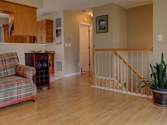 Sip your morning coffee in the spacious eat-in kitchen of this city home while enjoying the sights & sounds of the country right outside. So relaxing! Then look around: note the open floor plan, extra cabinetry in the kitchen and quiet Bosch dishwasher. The living room with laminate flooring, two bedrooms and bath with double vanity are also located on the main level. On the lower level, there is plenty of flexible space. How will you use it? Family room? Office? Pool table? There is also a full bath, bedroom and storage area with laundry. Gas stove is controlled by thermostat at bottom of stairs. The sectional sofa can convey with acceptable contract. Roof new in 2015 and storm door new in 2016. Great off street parking. Call today.