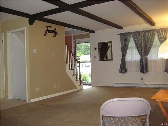 Country living but only 10 minutes to downtown Bethlehem to enjoy Musikfest, Celtic Fest, and Steel Stacks. Owner has loved this home for 25 years. This is a true colonial with a center hall foyer, a large living room w/ hardwood is under the carpet. The wood burning fireplace has a propane insert (can be converted back). The formal dining room has chair rail and crown molding and is open to the remodeled kitchen with a walk-in pantry. There is also a tiled, updated 1/2 bath. The 2nd floor has four good sized bedrooms all with hardwood floors. There is an updated main bath with double sinks, floor and wall tiles. A bonus is the finished basement w/ a family room/bar area with wood stove (as-is), an office, a full bath, and the utility room. The oversized, 2 car garage has pull down stairs for additional storage. For 3 season enjoyment relax in the 21x16 enclosed patio w/ insulated windows and two doors to the fenced yard. There is electric for a hot tub. There are nice north views.