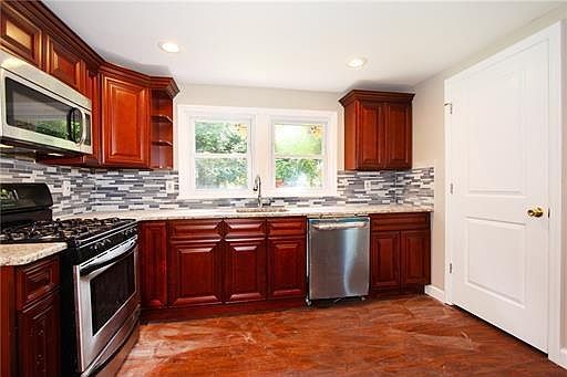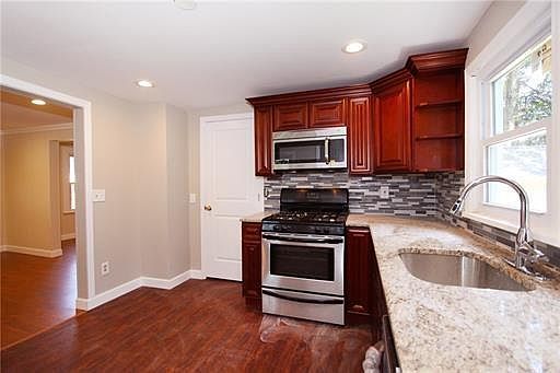 Spacious renovated 2 bedrooms Single Family house with 2 full bathrooms, large fenced back yard. Brand New kitchen with SS appliances, brand new bathroom. New floors throughout the house. Large fenced yard. Close to major highways and train station. House ready to move in. Rent with an option to buy. Up to 30lb pets will be accepted.