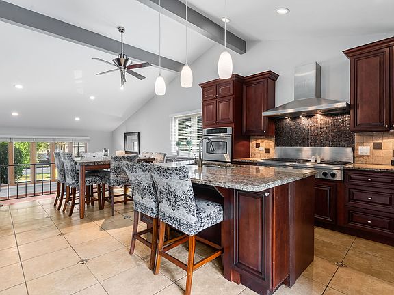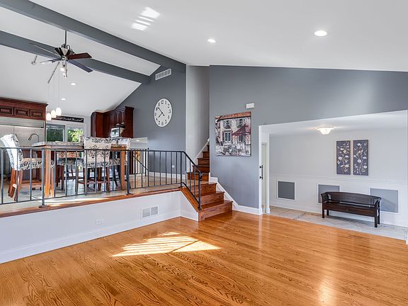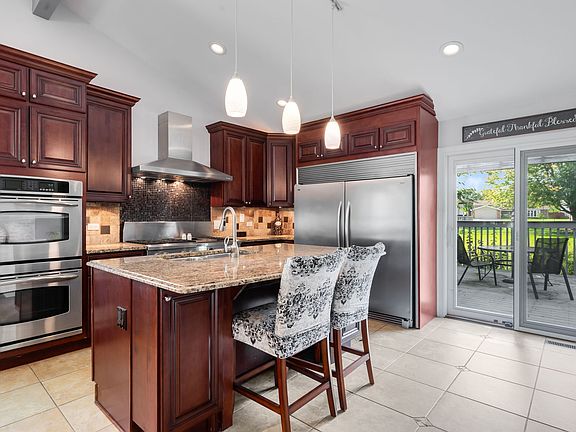 Multiple offers has been received Highest & Best due Monday 6:00 Welcome to this custom multi-level home with an open-concept design perfect for modern living! The chef's kitchen is a true showstopper, featuring an 8-burner Viking stove with grill top, industrial hood, double ovens, a 64-inch Sub-Zero refrigerator with separate freezer, granite countertops, custom 42" cherry cabinets, and a designer travertine backsplash. A large center island and breakfast bar overlooking the family room make this the ideal space for cooking and entertaining. The family room offers new carpeting, a brick gas-log fireplace, and patio doors leading to a patio and fenced backyard-perfect for outdoor gatherings. Patio doors from the kitchen also open to a deck with views of the manicured yard. A convenient guest bath completes the main level. Upstairs, the spacious primary suite includes a walk-in closet and a luxury bath with granite vanity and a shower. Two additional bedrooms provide ample closet space. The finished basement adds even more flexibility with a rec room, office, or possible fourth bedroom, plus a finished storage are. The laundry room is complete with washer and dryer and a slop sink. Roof is new in 2023! You will love this prime location near expressways, shopping, parks, and top-rated schools. This is truly a wonderful place to call home!