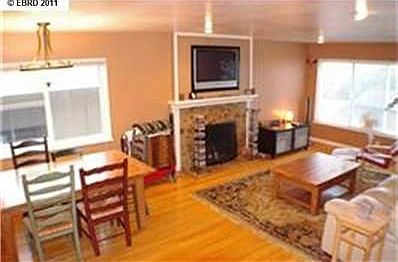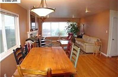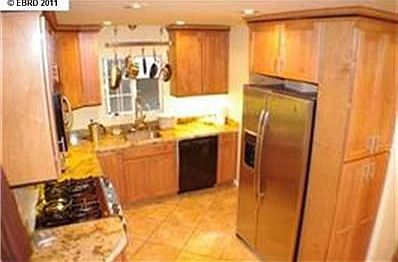 SF bay views both floors,legale inlaw with full size kitchen and separate livingroom,nestled in hills,updated kitchen with bar,walk to BART,easy commute,can lighting,maple cabinets,granite counters,wood floors on main floor,both kitchens with tile, both levels with fireplaces.