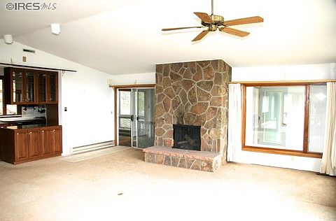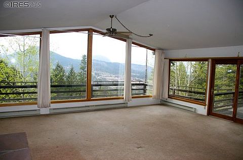 Vintage Windcliff home on 1.5 acres with magnificent panoramic views of Rocky Mountain National Park. Remodeled kitchen with Subzero, wine fridge, breakfast room. Large living room with window wall and rock fireplace. Chariming den with kiva fireplace. Basement has 2 large heated storage areas ready for finishes and 3/4 bath. Condition issues including carpet and exterior siding. Sold without Seller's Property Disclosure since current owners are relatives who have never lived there.