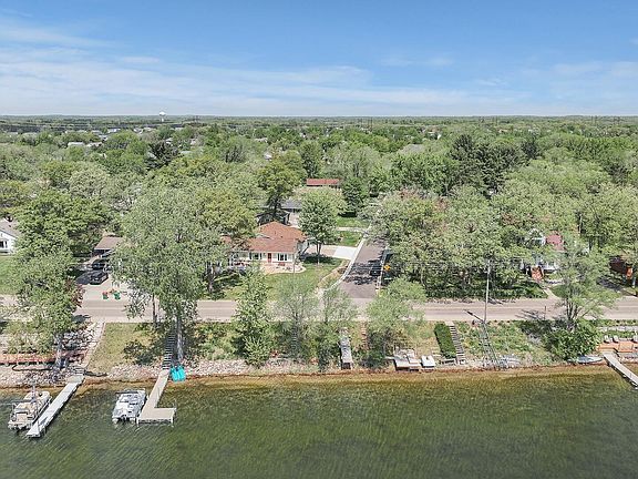 Beautiful, updated home w/ 29 feet of owned lakeshore w/ gorgeous views of Lake Mitchell. Enjoy lake life without the taxes & avoid the lake traffic. Short walk to your boat, dock, fishing or swimming! This spacious 4 BR, 2 bath home has been stylishly updated w/ classic white trim, paneled interior doors, neutral paint colors, & stunning flooring. As you walk in, you are greeted by an open and light-filled living & dining room and kitchen. The vaulted ceiling w/ recessed lights and beams bring a contemporary elegance to the space. The kitchen features newer cabinets, stainless steel appliances & granite countertops. You will love taking in the views of the lake from the 3-season porch. The primary bedroom provides a calm retreat & has double closets for all your storage needs. The cozy lower level has 2 more bedrooms, 3/4 bathroom and large family room w/ wood-burning fireplace. It is the perfect place for movies or game nights. Enjoy the privacy of having a fully fenced yard.