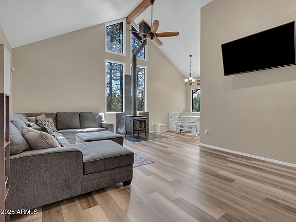 Welcome to one of Munds Park's most exceptional offerings a beautifully updated cabin nestled among towering pines on a rare, nearly 0.4-acre lot. This private property provides space, serenity, and modern amenities while retaining the timeless charm of a classic mountain cabin. Featuring 2 bedrooms and 1 bathroom, the home has been fully renovated to create a seamless blend of rustic character and contemporary comfort. The interior showcases a stunning open living space with new flooring and tinted windows that enhance light control and energy efficiency while maintaining cozy mountain ambiance. The newly renovated bathroom adds modern style, complementing the cabin's natural charm, and the turnkey updates throughout ensure move-in ready comfort. Step outside to enjoy the expansive grounds, perfect for outdoor living, gatherings, or simply relaxing among the tall pines. Completing the property is a detached garage, providing ample storage for vehicles, recreational equipment, and mountain lifestyle essentials. This property is more than a cabin it is a retreat that captures the best of Munds Park living: rare lot size, fully renovated interiors, and thoughtful upgrades that elevate both comfort and style. Opportunities like this are seldom available, so come view the property today!