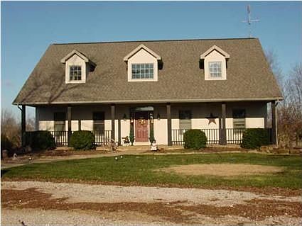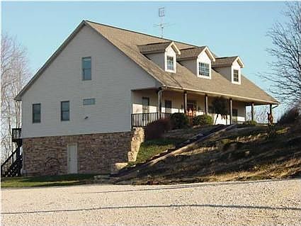 Don't miss this great HORSE property! 9.56 Acres of rolling land with horse barns, foaling stables, indoor riding arena, detached garage and a beautiful home to top it all off. This 3 bedroom 3 bath Cape Cod home is in great condition. Master suite is on the main level with huge walk in closet and whirlpool tub and seperate shower. Vanity has 2 levels with one of them being for the lady of the house. Bedroom has tray ceiling, carpet and ceiling fan. Enter into the foyer of the home and straight ahead you will enjoy the vision of the great room with cathedral ceiling, natural stone fireplace and patio doors that lead to a wonderful deck. Off to the right is a very spacious kitchen with plenty of cabinets and counter space and all appliances included and this leads to the dining room. Laundry room offers plenty of space to fold clothes, etc. with lots of counter space, also and has a staircase enclosed to access the enormous attic ( which could be turned into another bedroom or 2, bonus or whatever your needs are.) Also on the main level is one of the other bedrooms and a second bath with tub and shower unit. Downstairs you can enjoy a finished bathroom, 1 bedroom an office and a safe room. This is a full walkout basement and there is plenty of room to add additional rooms of your choice. The basement offers a built in gun safe, which also doubles as a storm shelter. Outside there are many buildings including an indoor riding arena with horse stalls, foaling stables, tack room, wash room and a kitchen, bath and sleeping space. This building could be used for a business of boarding horses for other horse lovers and your own animals. Riding lessons can be given in the indoor arena. Other buildings include a detached garage that also has a bathroom and can be used for a work shop and service area with two large over head doors.A machine shed for parking all of the extra equipment when not in use and so much more...........There are also several turn out shelters in the p