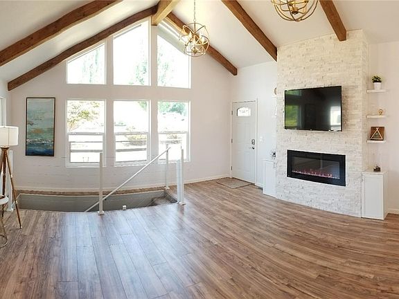 A stunning and complete remodel on this 4 bedroom, 3 bath rambler with finished basement on 1/2 acre lot. Modern meets contemporary design, featuring tastefully remodeled kitchen with quartzite counter-tops. New laminate flooring, fireplace, new carpet, new roof. New plumbing, electrical, and HVAC. Enjoy evenings on the deck, overlooking the expansive property, or a movie in the media room on a projector screen. Add'l features include a mud room, walk-in closet and free standing soaking tub.