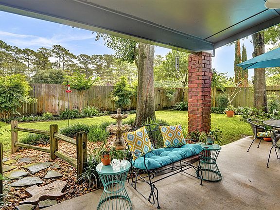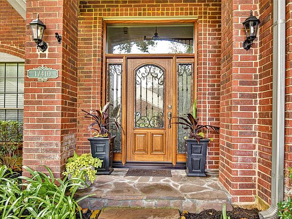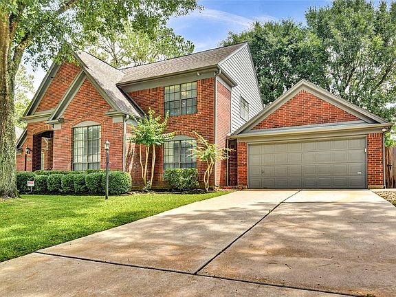 This adorable red brick beauty has everything to offer! Located on a quiet back street you have no drive through traffic & you'll love backing the greenbelt for extra privacy when you hang out in your covered patio! The updated wrought Iron front door w/side lights welcome you as you approach the home. The grand entry features L.Wood flooring, a wrought iron staircase & opens to your formal living that could be used as a home office! Extensive crown molding & cased openings throughout the downstairs! The kitchen features a large island, granite counters, stone backsplash, under-mount sink, and updated stainless appliances including an upgraded vent-hood. The den w/updated tile flooring & a custom surround/brick gas fireplace! The master retreat is down w/ updated shower. Large game room up! 2017- siding/gutters. 2020-new HVAC. Radiant Barrier/insulation. 2021-new carpet. Garage epoxy flooring. Alarm. Video surveillance system. Sprinkler..