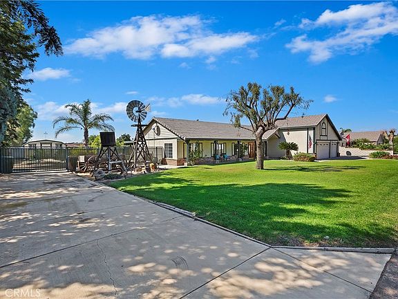 Country, Corrals, Cul De Sac are Included with This Three Bedroom Ranch Home, Located Minutes from Freeway, Shopping, Schools...Situated on Approximately One Acre, the Exterior Boasts Manicured Front Landscape, Inviting Front Porch, Parking for Recreational Vehicles, Two Corrals Separated by Tack Room, Wash Area, Spacious Covered Patio with Built In Bar B Que, Patio on Side of House, Storage Bin, Storage Shed and Covered Area for Supplies...The Double Doors Greet You Entering Interior Space which Include Formal Living Room, Open Family Room with Fireplace, Dining Room, Kitchen with Granite Counters and Stainless Steel Appliances, Updated Hall Bathroom / Dual Sinks, Primary Bedroom / Walk In closet, Primary Bathroom / Dual Sinks....Three Car Garage and "Old West" Water Tower, Windmill, and Semi Authentic Wagon Compliment Balance of Property....**Bonus**, No Neighbors Behind, Sliding Gates Provide Access to Rear of Property!