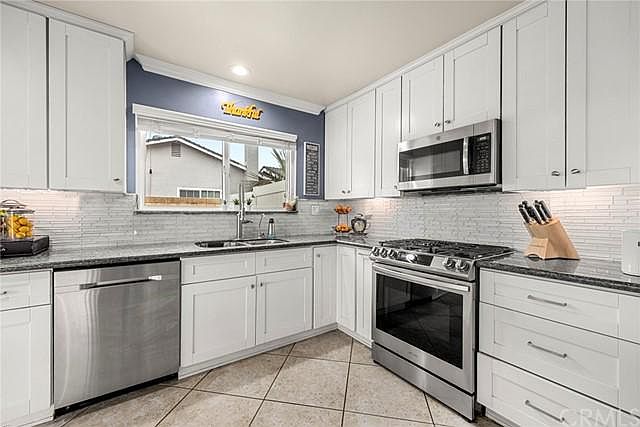 Welcome home - This 4-bedroom 2 bath home is ready to enjoy! When you drive up you will love the beautiful landscape and large driveway. When you enter this home, you will enter a large living room that opens to a spacious kitchen. The kitchen has upgraded cabinets, granite counter tops and stainless steal appliances. Kitchen opens to a large backyard and patio area great for entertaining and BBQ's. You will also like the large primary room that has a private bathroom, the secondary rooms are also spacious and share a remodeled bathroom. This home also features: Dual pane windows, updated electrical panel, upgraded HVAC, finished garage, front and back landscaping, crown molding, tile flooring in main living space, updated bathrooms and kitchen. This home is also conveniently located to the 91, shopping centers and schools.