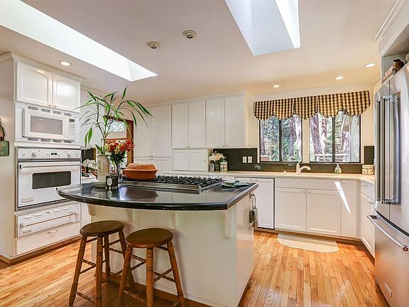 As you enter the gated entry and tree-lined driveway, you experience the serenity of this bucolic setting with sounds of rustling leaves and birds chirping, allowing one to become one with nature. This country home is delightfully spacious with over-sized rooms. The many windows and skylights make it light and airy. The cook's kitchen with Viking range top and oven, Bosch dishwasher is an entertainer's delight! Three fireplaces and a wood stove give ambience on those chilly winter nights. Enjoy the views of the pond from your expansive deck or take a dip in the hot tub. The master suite is spa-like with separate dressing areas and large walk-in closet, luxurious bath and fireplace. The 3-car attached garage, immense amount of storage, healthy radiant heat, fire suppression system, back-up generator, metal roof, room for vegetable garden and wine cellar make this an outstanding value.