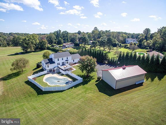 You'll be transported as soon as you turn off Route 214/Central Avenue and onto the meandering drive up to this incredible Colonial sited on two acres of tree-lined and gently rolling hillside. Believe me, once you're there, you won't want to leave. Whether you're enjoying your morning coffee on the welcoming front porch; dining outdoors on the huge deck; or, perhaps sipping a drink poolside, you'll find the spaces generous and the scenery simply lovely. Inside, a main level Master Suite awaits with views of scenic pastures. The upper level boasts a second Master Suite with 2 additional Bedrooms and a full Hall Bath. Returning to the main level, the floor plan includes a Mudroom/Laundry area just off the Garage with space to accommodate a 2nd refrigerator -- a must-have for any Entertainer. The Kitchen was designed with 42" Shaker Maple cabinets and granite tops. A large center island and window seat with fun light fixtures makes this the perfect spot to hangout. The Kitchen is flanked by a well-appointed Dining Room with pass-thru and a Great Room with cozy, wood-burning fireplace. Just off the Great Room is the work-from-home Office space with built-in desks and cubbies. Heading downstairs, the Basement awaits your vision: a Rec Room or additional storage -- either way, it's equipped with a rough-in for another Bath. Well, let's make our way to the pool deck from the walk-out Basement. To the left is a pool shed housing the chemicals and equipment for the gunite pool. A 6 foot vinyl privacy fence encompasses the pool and is outfitted with two gates for access to either side of the yard. Now on to the 30 x 50 Steel Pole Barn with electric (and plumbing just outside) -- it even has a large cupola and weathervane! We have an entire spec sheet just on this structure. Convenient to major routes, shopping and restaurants, too!