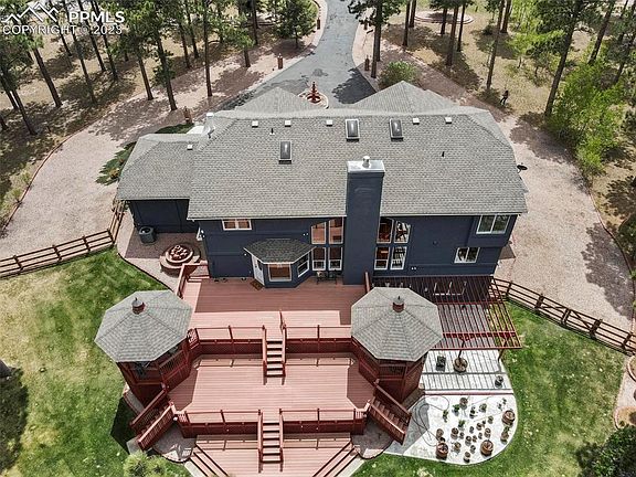 REMODELED FROM TOP TO BOTTOM and brand new paint inside and out! Come see this fully remodeled home nestled in the pines of highly desirable Bent Tree! Enjoy the welcoming front porch, 4 bedrooms on one level, fully finished walkout basement with 2 more bedrooms, gorgeous 2.59 acres of gardens, fenced yard and play area * The main level is perfect for elegant entertaining or casual family living * Stunning NEW upscale kitchen with breakfast nook, quartz counters, high-end stainless steel appliances, tons of gorgeous cabinetry and European tile backsplash - inspired by the Dutch tile from the 1600s - opens to the elegant two-story family room accented by a heart-warming brick fireplace - and to the expansive composite deck with TWO gazebos * NEW Master and secondary Baths * The backyard is simply amazing! All fenced, beautifully landscaped, with level play yard .... and has a mini-orchard with plum, peach & cherry trees plus raspberry and blackberry bushes. The flower gardens are a delight to the senses as are 3 water features. Enjoy your very own nature reserve at your doorstep! * Returning to the indoors, the main level also has a large formal dining room that easily seats 10, spacious living room/music room/home school room and large office * The upstairs includes luxurious Owners Retreat with fireplace and newly remodeled bath plus THREE more large bedrooms * The fully finished walkout basement has a guest bedroom, craft room lined with storage cabinets plus game room and walks out to patio, and 3 under deck storage areas * New asphalt on circular drive and exterior painted 2022 * Located close to hiking and biking trails, the Air Force Academy, excellent District 38 schools and I-25 * This home has been meticulously cared for and is ready for your family now * Ideal for multi-generational living, too * The photos give just a glimpse of some of the home's superior features -see attachment for complete list. This is a "must see" now!