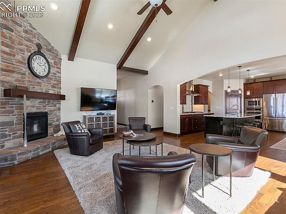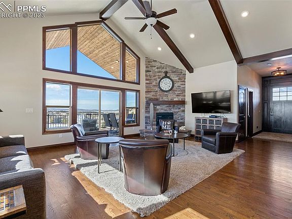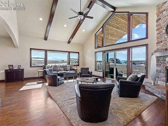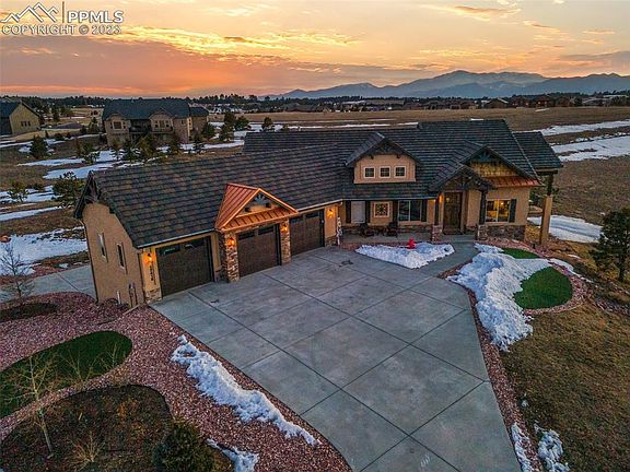 This breathtaking ranch style home located in the highly desirable Preserve at Walden neighborhood is truly one not to be missed. Perfectly situated between Denver and Colorado Springs, this stunning home featuring a 6 car garage offers a tranquil retreat from the hustle and bustle of city life while still being conveniently located to shopping, dining, and entertainment. Nestled on a quiet cul-de-sac with amazing views this home is perfect for multi-generational living with a separate garage entrance and is ADA compliant. When accessing the private drive you will be greeted by a large covered front porch. Entering the home make note of the beautiful knotty alder cabinets and doors throughout. This spacious open floor plan welcomes you with natural light and stunning hardwood floors. The gourmet kitchen is a chef's dream, featuring top-of-the-line stainless steel appliances, granite countertops, gas range, large island, kitchen pantry and an abundance of cabinets. The master suite is a true oasis, with a luxurious spa-like bathroom with walk-in shower, soaking tub, large walk-in closet attached to the main level laundry. Two additional bedrooms are generously sized, each offering its own unique character and charm, be sure to make note of the Murphy bed in the room currently used as an office. Finishing out the main level, the spacious family room with gas fireplace walks to the outdoor living space which is equally impressive. Featuring a glass enclosed (check out the glass sliding door) covered deck - all perfect for relaxing and taking in the breathtaking views. Make your way to the lower level and the sprawling entertainment area complete with a wet bar, half bath, two additional bedrooms, Jack and Jill bathroom, laundry room and walk-out to the large concrete patio and hot tub. Whether you're hosting family and friends or simply looking for a peaceful place to unwind on those gorgeous Colorado nights. Don't miss your opportunity to own this incredible property.
