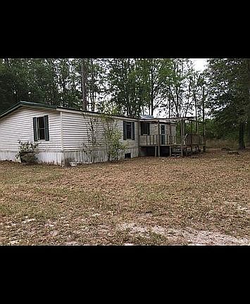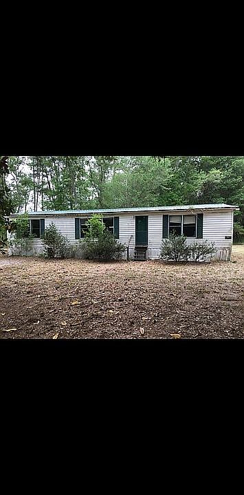 Selling AS IS!! 3/2 moble home. house is used for storage. can ge made livable with work. 5acres partially cleared with beautiful oak trees. Large magnolia tree and plenty of plants. driveway access needs some clearing. Land is high and doesnt flood. Completely buildable.