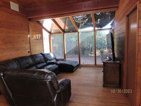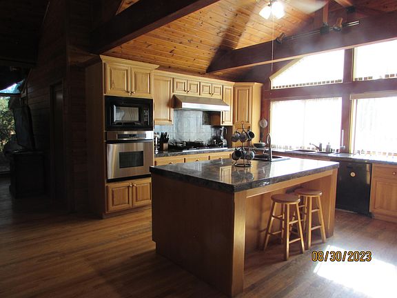 Three bedroom 2 bath rustic, chalet style, home on private, mostly level, 2 acre parcel within short walking distance to Happy Valley Elementary School. The house has 1690 square feet with red cedar siding, soaring cathedral ceiling, oak flooring, granite counter tops, kitchen island with separate sink and wood burning stove. Relax in the cozy sun room and enjoy your favorite music through the built in sound system. Completely fenced 2 acre parcel is ideal for pets and animals and extensive gardening already having a variety of fruit trees. Great location to raise a family. Country living yet only minutes from town.