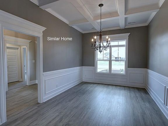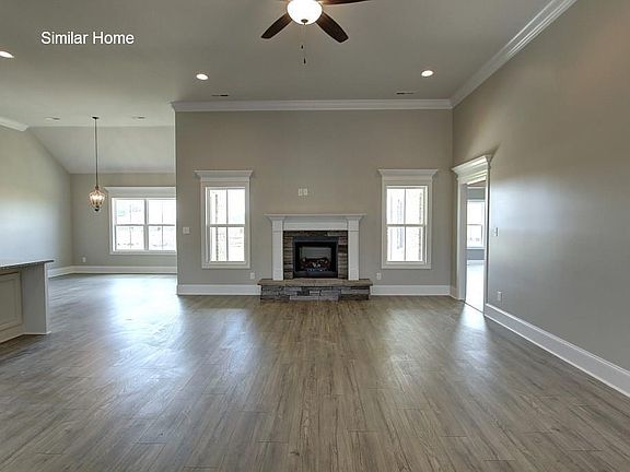 All brick High Point A is an open plan with 3 car side entry Garage. Home has 4 bedrooms, 3 baths and a sunroom. Home has wood plus flooring (Mohawk Revwood) in all living areas and bedrooms. Great Room features 12' ceiling, extensive trim, gas-log fireplace with upgraded fireplace treatment, wood plus flooring, floor outlet, recessed lights and ceiling fan. Dining room has 10' coffered ceiling, wood plus flooring and extensive trim including shadow box under chair rail. Open Kitchen includes 12' ceiling, custom cabinetry with granite countertops, large island with extra storage and countertop seating, stainless appliances (Gas Cooktop, Wall Oven, Wall Microwave, Dishwasher), tile backsplash, wood plus flooring, recessed lighting, large walk-in pantry and drop zone bench.. Breakfast has 12' ceiling, wood plus flooring and extensive trim. Master bedroom has a 11' double tray ceiling, wood plus flooring, recessed lighting, extensive trim, ceiling fan and large walk-in closet. Master bath has 11' ceilings, glamour tub, large tile shower with two shower heads and rimless door, separate toilet area and double vanity with granite. Large sunroom has vaulted ceiling, wood plus floor and ceiling fan. Additional bedrooms have 9' ceiling, wood plus flooring, crown molding and ceiling fans. The additional baths have 9' ceilings, tile flooring and granite countertops. Laundry has 9' ceiling, custom cabinets and tile flooring. Home has a tankless water heater. Home has a rear covered porch with ceiling fan. Home includes a fully sodded yard, gutters including piping under sidewalks and attractive landscaping. Highland Ridge has underground utilities, street lights, side walks, curb and gutter. No Smoking. Renter responsible for utilities and lawn maintenance.