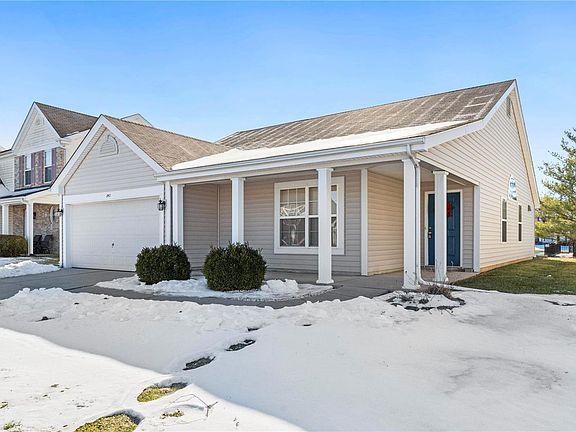MOVE-IN READY! This very clean & beautifully maintained home offers a SPLIT FLOOR-PLAN designed for both privacy & comfort. Highlights Include: SPACIOUS LIVING AREA with VAULTED CEILINGS, an abundance of NATURAL LIGHTING & PLUSH CARPETING that creates a warm & inviting atmosphere. The kitchen features HICKORY FINISHED CABINETS, a CENTER ISLAND, stainless steel sink, disposal, and all APPLIANCES ARE INCLUDED. The ENCLOSED PORCH is perfect for enjoying morning coffee, hosting intimate dinners, or simply relaxing in a peaceful & private setting. Luxurious PRIMARY SUITE: Retreat to a private space with a full bath boasting a separate shower & JACUZZI TUB, luxury vinyl tile flooring, and a large WALK-IN CLOSET. Conveniences Galore: Wonderful storage, MAIN FLOOR LAUNDRY with a stacking WASHER & DRYER, covered front entry, off-street parking, and an ATTACHED 2-CAR GARAGE for effortless everyday living. Don't wait! Schedule your private showing today. (+Located only 12 miles from Scott AFB)