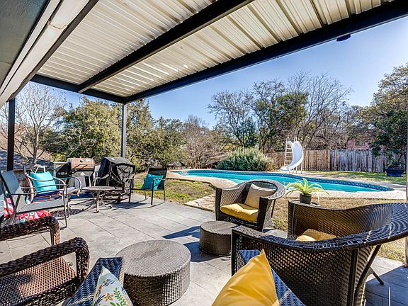 This beautifully designed and fully furnished split-level 3-bedroom, 2-bathroom home offers over 2,000 square feet of inviting living space in the heart of Brook Hollow. The open floor plan features granite countertops, ceramic tile, and warm laminate flooring, flowing seamlessly into a covered patio that overlooks a serene hillside in-ground pool perfect for relaxing or entertaining. Additional highlights include central heating and cooling, washer/dryer hookups, and a spacious fenced backyard. Located near top-rated schools, major highways, and medical centers, this home blends charm, comfort, and convenience in one of San Antonio's most desirable neighborhoods, which is perfect for long-term and mid-term stays as well as a great option for temporary housing.