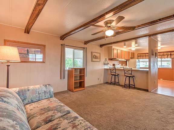 FHA financing available. Beautiful two bedroom remodeled home ready for new owner. The owners put lots of love and special detail into making this home shine. This home has quality dual pane windows, new AC, newer roof, new siding and skirting. The home has been painted, has new doors and new flooring throughout. The kitchen has been partially remodeled and looks great. All the plumbing has been redone inside this home. This home also has full length covered awnings with concrete on both sides, 12 X 12 workshop with electric, new front and back redwood steps, comes partially furnished and all appliances stay. Your clients will enjoy this private location with mountain views to relax and enjoy after a long day. Come by and see this home today!