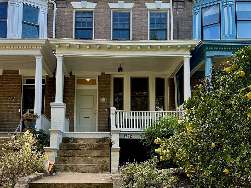 This beautifully maintained 4-bedroom, 3.5-bath townhouse offers the perfect blend of space, charm, and modern upgrades in one of DC's most sought-after neighborhoods. The new European-style kitchen with stainless-steel appliances flows into dining and living rooms separated by historic sliding pocket doors. Enjoy plenty of sunlight and outdoor living with a curated front lawn with citrus trees, covered front porch, shaded back deck off the kitchen (perfect for al fresco dining!), and a fully fenced-in backyard.