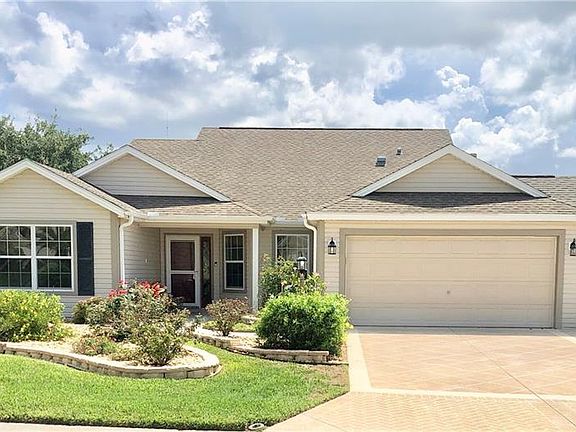 FABULOUS HOUSE - BIG PRICE REDUCTION - COME QUICKLY BEFORE ITS GONE. LOCATION ! LOCATION ! BOND PAID ! COME SEE THIS MOVE-IN READY DESIGNER 3 / 2 / 3 EXPANDED CAMELLIA W/ FLORIDA ROOM & EXTERIOR SIDE GOLF CART GARAGE ADDITIONS (Same Floor Plan as Gardenia/Sunflower). EVERYTHING YOU WOULD BE LOOKING FOR. The Bond Is PAID, almost 2100 sq ft of Heated and Cooled Space; Your new home is Located in a Fabulous neighborhood with NO drive thru traffic in the Sweet Spot of The Villages between 466 & 466A; between LAKE SUMTER LANDING & BROWNWOOD in SUNSET POINT VILLAGE Near Lake Miona Recreation Center. The House features 11 High ceilings, Quartz, Granite, Open & Split Floor Plan, Fresh Paint, New Ceiling Fans, Gas Stove & Utilities, New CARRIER A/C 2019 w/ existing 30yr Roof. Quartz Countertops in the Kitchen & Granite in both Bathrooms. Enjoy a cup of Coffee in The Florida Room or Eat-In Kitchen which features a Breakfast Nook, Quartz Counter Tops, Maple Cabinets w/ Pull-out Drawers, New Refrigerator, Gas Stove, Dishwasher, Microwave, Ceiling Fan, Under & Over Cabinet Accent Lighting. Extra Refrigerator in the Garage. There is Newer Luxury LG Washer & Dryer on Pedestal Stands in the Indoor Laundry Room w/ Wash Sink. The Large Master Suite w/ ensuite Master Bath w/ Built-In Granite Vanity, 2 Sinks, His & Her walk-in Closets, Linen Closet, Step-In Shower w/ built in Tile Seat. The 3rd Bedroom has no Closet & could also be used as an Office, Craft Room, Den, or Study. The Florida Room is Centrally Heated and Cooled, 2 Ceiling Fans, Recessed lighting, surrounded with Landscaping and Remote-Controlled Shades for additional privacy. Adjoining the private Florida Room is Birdcage enclosure w/ Gas BBQ Grill ready for your sizzling steaks that leads to the Large Side yard which has 38 to 40 distance from the house to the curb. Imagine the possibilities of what you could do with that much space!! The yard is meticulously Landscaped w/ many beautiful Blooming Shrubs w/ Brick Planters. The Camellia / Gardenia Model is one of the most popular & practical floor plans. Your new home is so conveniently Located Near: Cane Garden Country Club, Sunset Pointe Pool, Lake Miona Recreation Center, Lake Sumter Landing, Brownwood, Easy Access Shopping, Restaurants, Entertainment, Banks, Churches, Medical, and so much More! You have to come see this one for yourself. It checks All the Boxes!! Call us Now to schedule your own private Showing.