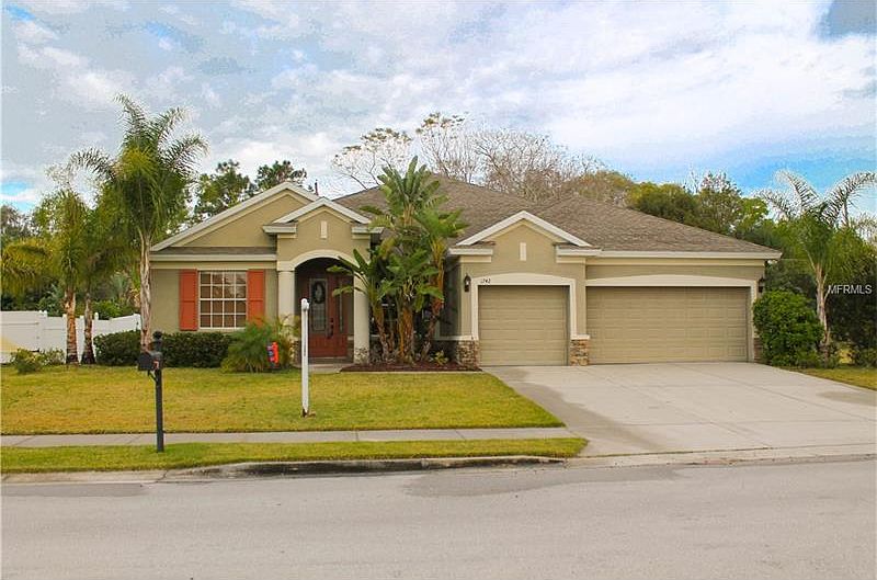 Lovely Florida contemporary POOL home located in Eagle Crest @ Lake Buckeye Community. This home was built in 2007 and features 5 bedrooms, 4 baths and a 3 car garage. Great room plan with formal dining room. Eat-in kitchen with nook area for casual dining. There is a near by boat ramp (not in the community) on Lake Buckeye where you can launch a boat, fish or just enjoy a beautiful Florida sunset. Bruce wood flooring through out the main living areas, 2" blinds, gas stove and water heater, intercom system and security system. Granite counters in kitchen and 3 bath rooms, 4th bath has Corian counters. Glamour master bedroom and bath suite. Split bedrooms, volume ceilings, spacious and light. 2nd story 5th bedroom/theater room/playroom has a private bath and a 2nd A/C unit. Both A/C units are new, upstairs has new carpet, new pool pump and cell for salt water system. Fenced backyard, covered lanai and screened pool. Welcome home to wonderful Florida lifestyle.