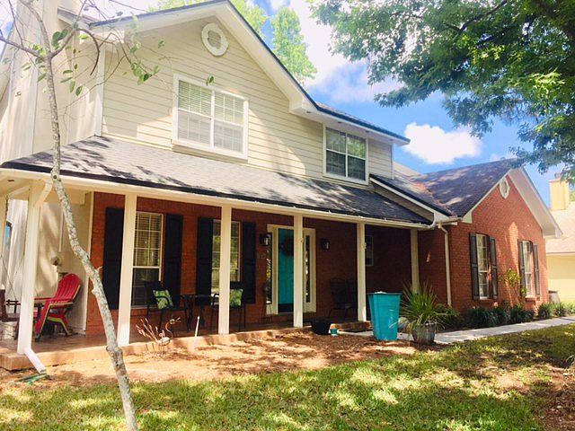 This 4 bedroom, 2-story home in a gated community, is convenient to shopping, restaurants and the beaches! Situated on a cul-de-sac with a half acre lot, enjoy a huge backyard and plenty of front yard! There is a long drive way with courtyard garage entrance. Downstairs family room with fireplace, separate dining, formal sitting room with additional fireplace, half bath, PLUS flex room that works great as a play room sun room or office! The kitchen has 42'' cabinets, stainless appliances, granite counters and is open to the family room with a 2nd fireplace. Upstairs are 3 bedrooms and a bathroom, the master bedroom with ensuite and access to an extra, huge storage space over the garage. Storage shed in back yard is perfect for all lawn or outdoor equipment!