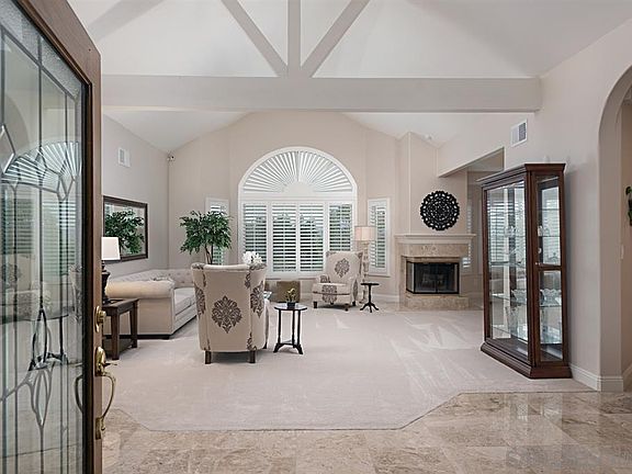 Recently Remodeled Single-Story View Home! Circular Drive allowing for parking under Porte Cochere. Enter through Decorative leaded glass front door to Spacious Living room w/dramatic High Beamed 15'+ ceilings offering Amazing Hilltop views! Formal DR w/elegant built-in cabinets and marble Fireplace connecting the Formal Living area with Plantation shutters. Spacious kitchen w/granite island, soft close counters & back splash. Euro-White Cabinets, Jenn-Air Sub Zero refrigerator, w/stainless appliances