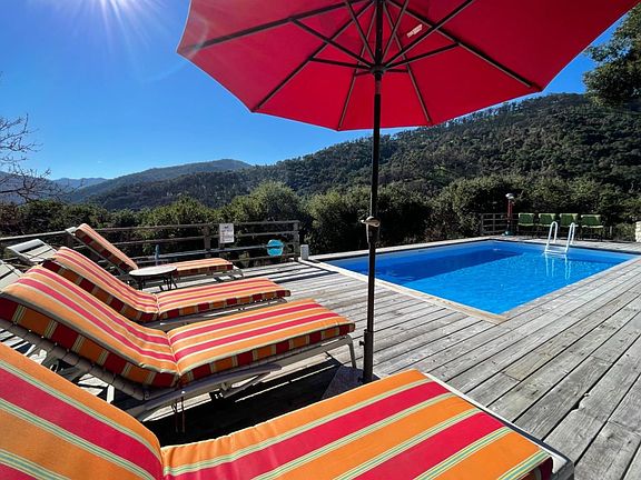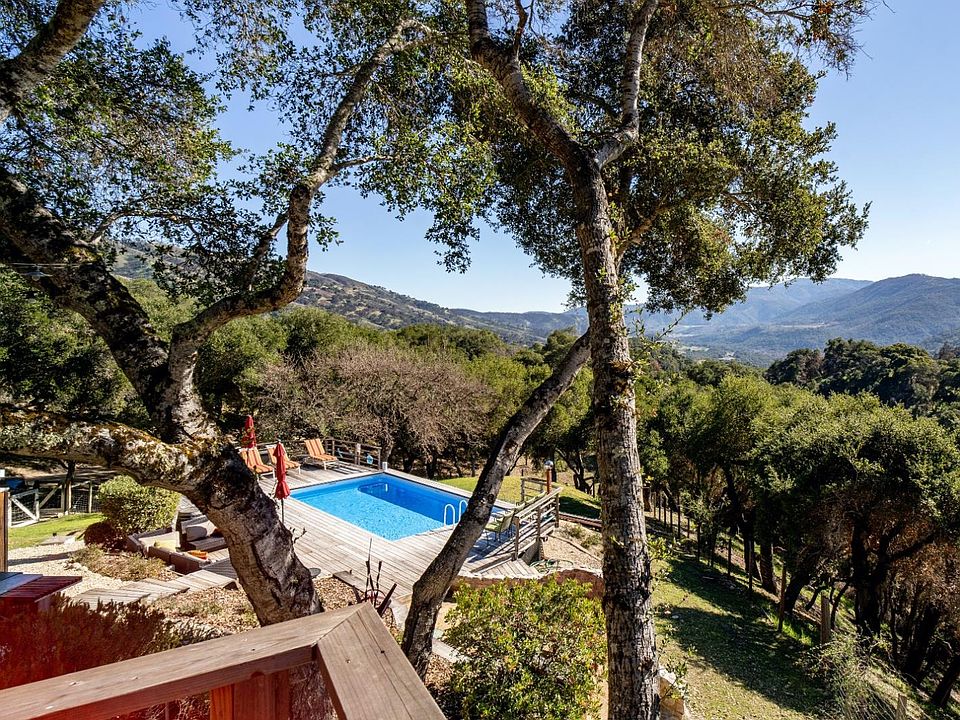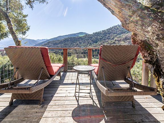 Only 20 minutes from Carmel Valley Village, this stunning 20 acre property offers tranquil easy living for full or part time enjoyment. The gated drive leads past meadows, a small orchard w/ raised bed gardens up to the splendor of grand oaks that enhance the magic of Rose Cottage. The sunny open great room w/ high ceilings, wood burning stove & wall of windows looks all the way out to vineyard vistas beyond. A charming breakfast bar, large dining area & kitchen w/great counter space, gas stove & upgraded appliances = max entertaining value! The main bdrm. is perched up a level with a lovely ensuite, book nooks & amazing views! Decks for outdoor living, French gravel pathways & flower beds, pool side fun, hot tubing & rock fireplace gatherings complete the picture! Great well & solar power = RV friends for exploring, star gazing & bird watching. Owned solar system enjoys credit from PG&E. Offered with most furnishings. Buyer to cooperate with 1031 exchange at no cost to buyer.