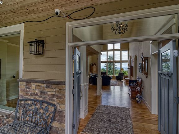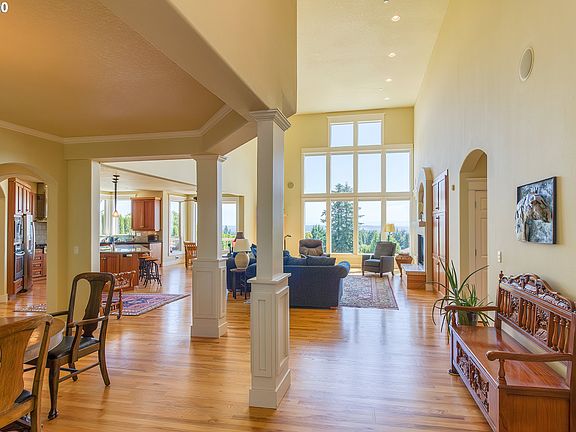 The views of this property are amazing! Mt. Hood, territorial and city lights. 5 acre. Mascord Design. 4 Bed, 2 full and 1/2 Bath. Main level living, Great Room and the Master on the main plus a Den. Upper level has 3 more bedrooms, 4th large 16 x 15 bedroom, has nich to add a closet. RV garage with shop/barn plus red barn for hay and 2 stalls for horses/livestock joined to a fenced corral. RV parking w/ hookups too! Sherwood schools! Could be your own vineyard! Buyer to do own due diligence.