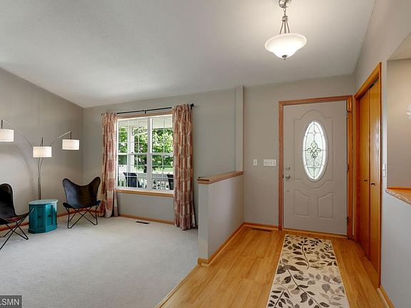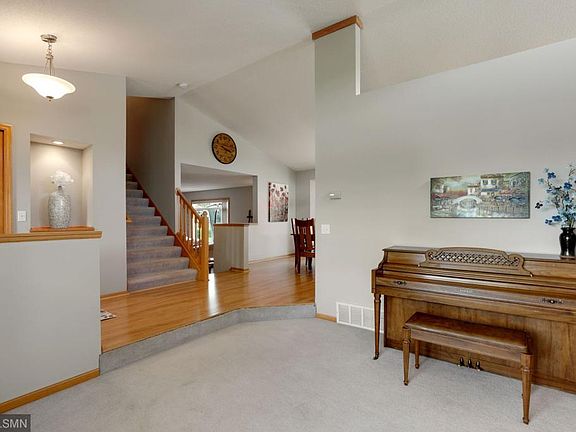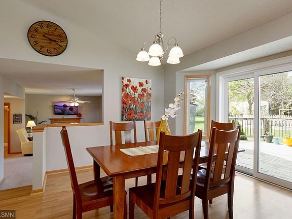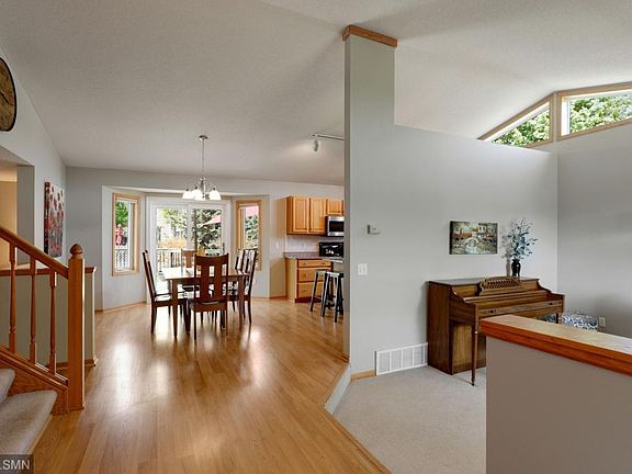 Gorgeous modified 2-story home in ISD 194 (Cherry View/Century/LNHS). Kitchen has granite, center island, vaulted ceilings and access to the large deck. 3 good-sized bedrooms upstairs with full hall bathroom, master suite has walk-in closet, dual vanity and separate jetted tub and shower. Family room has gas fireplace and plenty of room. Lower level has large amusement room. Great corner lot with beautiful landscaping, close to Cherryview Park. New paint throughout. Roof new in 2014.