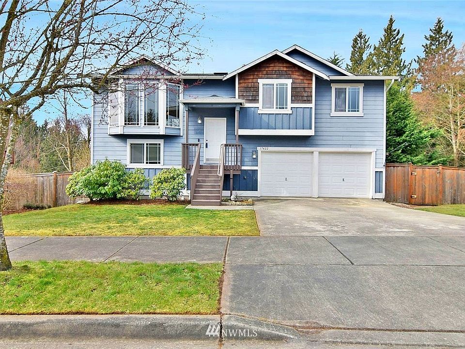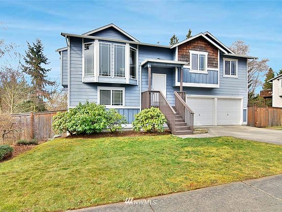 Enjoy living in this spacious mid-entry 4+ bed home. Located on quiet dead-end street in Crossroad Community, offering basketball courts & playgrounds. Beat the summer heat with central AC. Downstairs features huge family room, 1 bed w/ built-in Murphy bed, ¾ bath plus an extra finished room perfect for guests or home office. Upstairs features living room centered around gas fireplace, sun-soaked kitchen, dining room w/ additional cabinets & countertop installed last year giving you loads of extra storage. 3 beds, 2 full baths. All appliances stay including washer, dryer, dishwasher less than 1 year old. Carpet replaced last year. Located close to grocery stores, Costco, restaurants, Hwy 9 & I-5. Walking distance to new Amazon Facility.