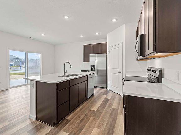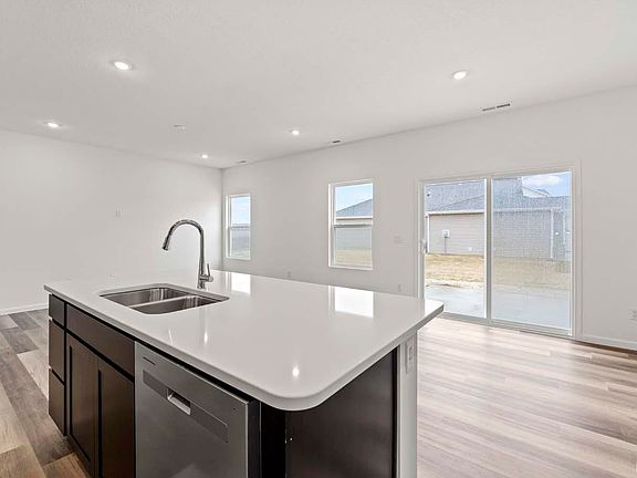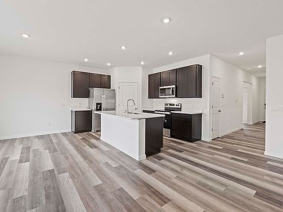 Trendy new Harmony plan by D.R. Horton in beautiful Marcella. This 3 bedroom 2 bathroom single story home boasts an open concept living space. This home features a large Bedroom 1 with walk in closet and dual vanity bath. Enjoy your kitchen with a walk in pantry and an island that is open to the connected dining space. An added feature to this home is the extra large mechanical room. 3 car garage. Photos representative of plan only and may vary as built.